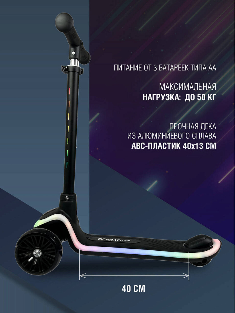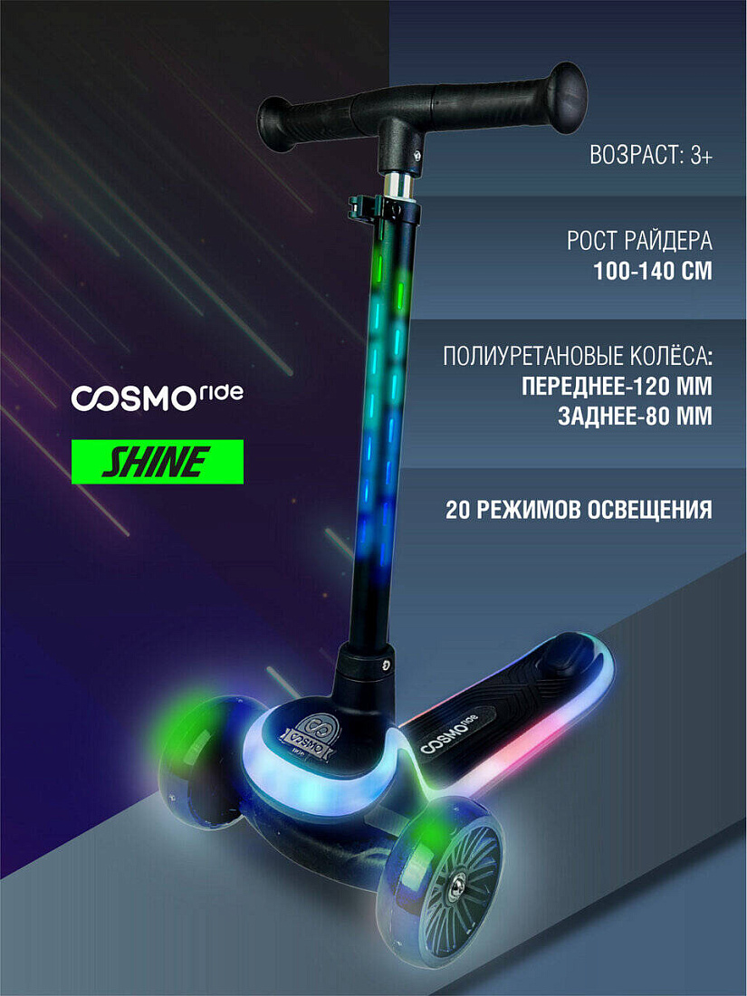 Самокат COSMORIDE SHINE, цв. чёрный