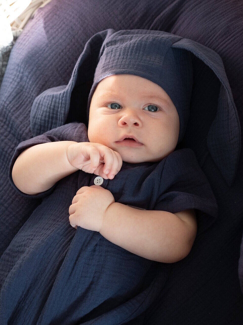 Нежнейший муслиновый чепчик оригинального кроя подарит малышу комфорт и удобство с первых дней жизни. Чепчик представлен в виде "Зайчика" с длинными ушками. Чепчик защищает родничок, сохраняет тепло и создаёт комфорт для сна и активности малыша. Нежные завязочки позволяют чепчику регулировать посадку по голове и не сползать на глаза. Изделие изготовлено из натурального хлопка, приятного к телу и абсолютно безопасного для грудного ребенка, только что появившегося на свет. Чепчик оберегает голову и ушки младенца от переохлаждения и сквозняков. Такой головной убор очень мило смотрится на головке малыша и обязательно понравится ему самому.