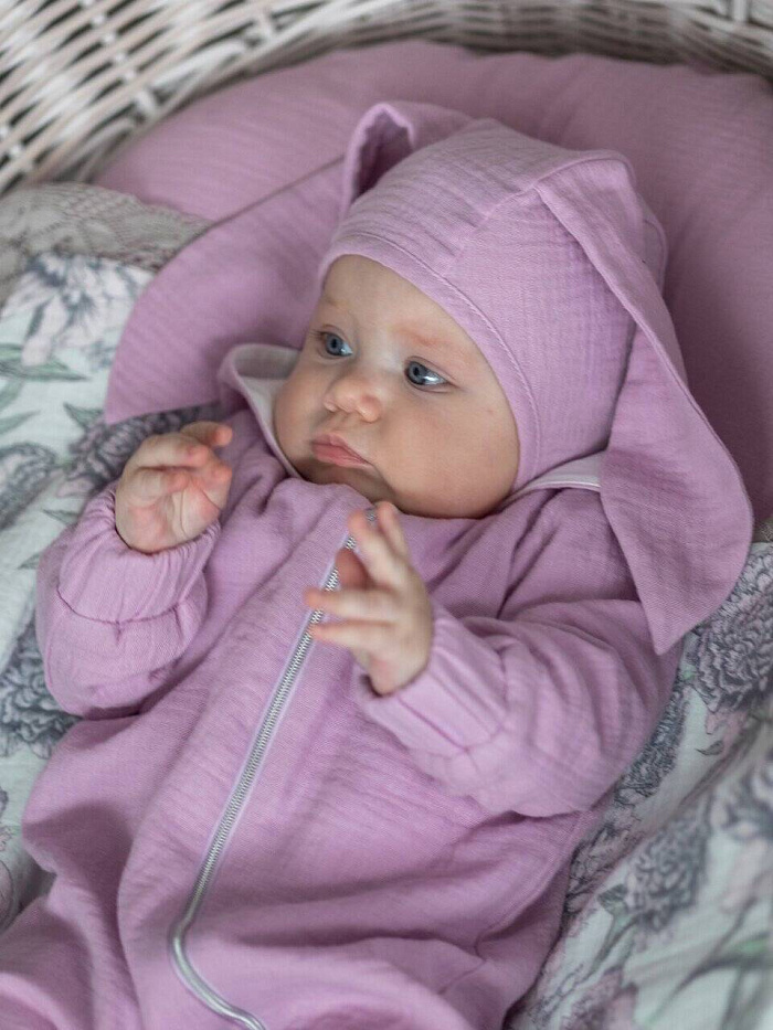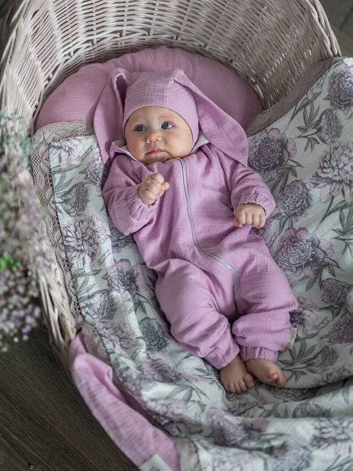 Нежнейший муслиновый чепчик оригинального кроя подарит малышу комфорт и удобство с первых дней жизни. Чепчик представлен в виде "Зайчика" с длинными ушками. Чепчик защищает родничок, сохраняет тепло и создаёт комфорт для сна и активности малыша. Нежные завязочки позволяют чепчику регулировать посадку по голове и не сползать на глаза. Изделие изготовлено из натурального хлопка, приятного к телу и абсолютно безопасного для грудного ребенка, только что появившегося на свет. Чепчик оберегает голову и ушки младенца от переохлаждения и сквозняков. Такой головной убор очень мило смотрится на головке малыша и обязательно понравится ему самому.