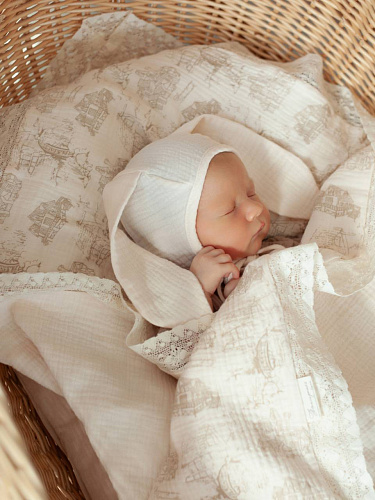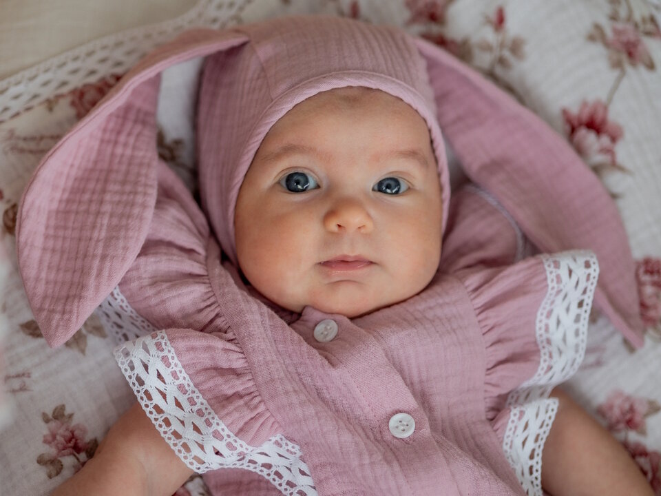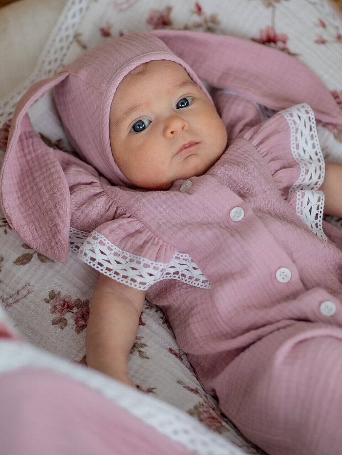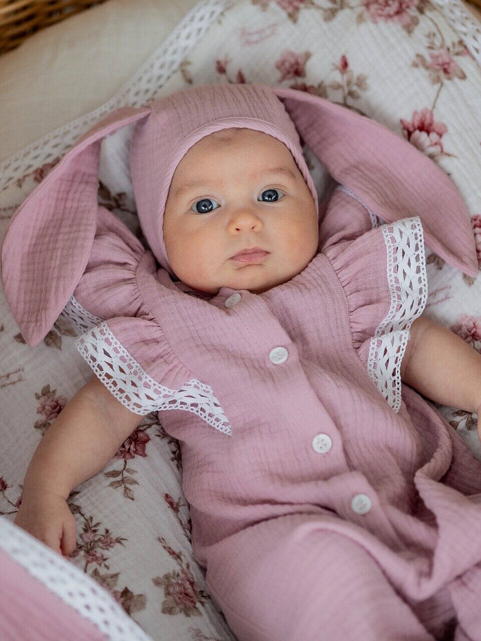 Нежнейший муслиновый чепчик оригинального кроя подарит малышу комфорт и удобство с первых дней жизни. Чепчик представлен в виде "Зайчика" с длинными ушками. Чепчик защищает родничок, сохраняет тепло и создаёт комфорт для сна и активности малыша. Нежные завязочки позволяют чепчику регулировать посадку по голове и не сползать на глаза. Изделие изготовлено из натурального хлопка, приятного к телу и абсолютно безопасного для грудного ребенка, только что появившегося на свет. Чепчик оберегает голову и ушки младенца от переохлаждения и сквозняков. Такой головной убор очень мило смотрится на головке малыша и обязательно понравится ему самому.