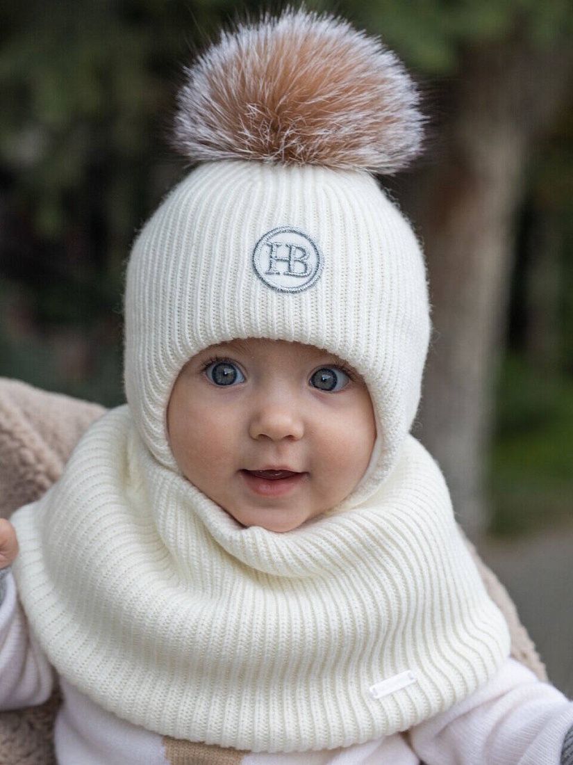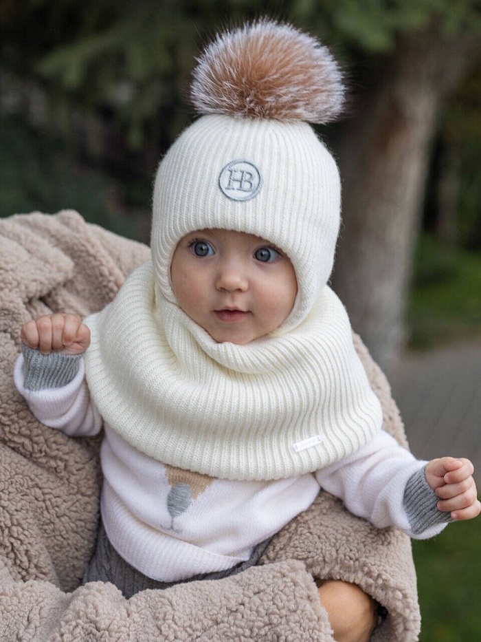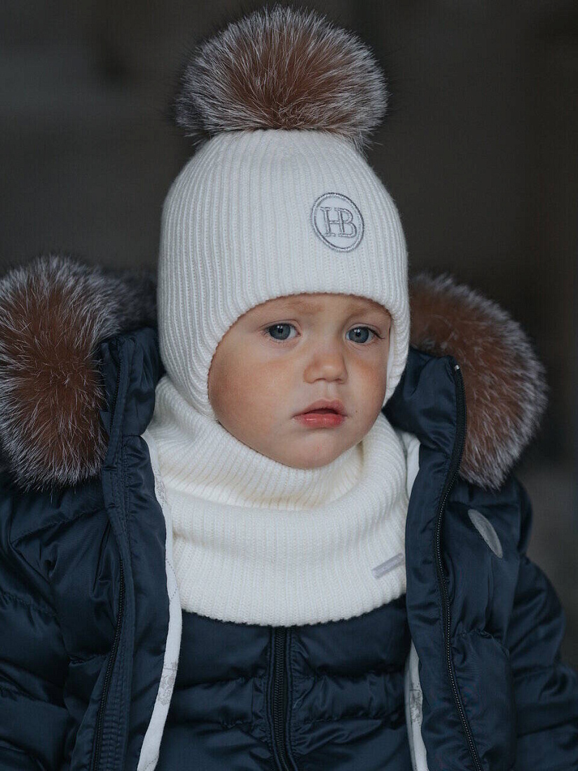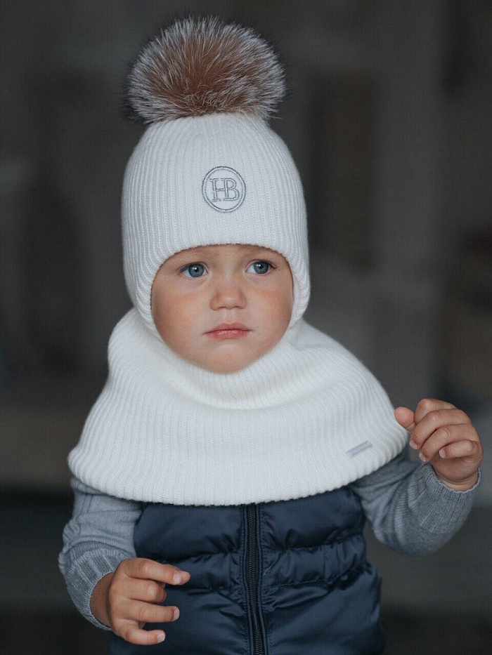 Детский вязаный шерстяной комплект, состоящий из шапки и снуда, подойдёт ребёнку в зимнее время года. Удобные мягкие завязки позволяют шапке плотно сидеть на голове и не сползать на глаза. Шапка хорошо закрывает уши, защищая от холода и ветра. Снуд согревает шею. Комплект изготовлен из шерсти с добавлением кашемира. Шапочка имеет хлопковый подклад и утеплитель термофин, головке ребенка будет мягко и тепло. Изделие дополнено натуральным помпоном и вышивкой фирменного логотипа.