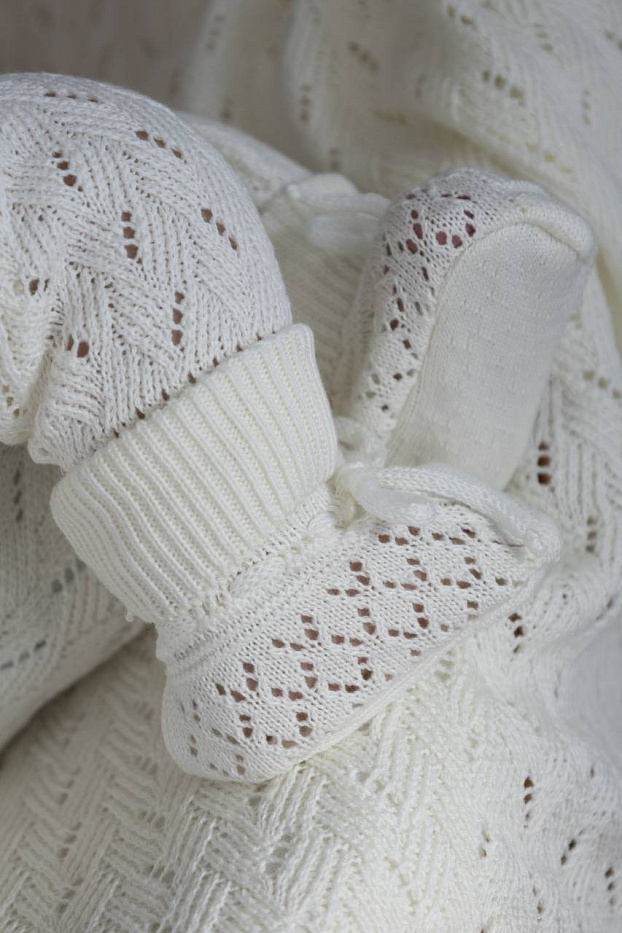Вязаные носки для грудничков созданы с учетом нежной и чувствительной кожи малышей. Модель выполнена из мягкой пряжи, которая обеспечивает комфорт и приятные ощущения при носке. Основной цвет изделия — спокойный, универсальный, гармонично сочетающийся с разной детской одеждой. Вязаная структура изделия обладает аккуратным ажурным узором, который не только украшает носки, но и способствует циркуляции воздуха, предотвращая перегрев ножек. Высокая эластичная резинка хорошо фиксирует носки на ножке, не сдавливает и не оставляет следов, что особенно важно для грудничков. Текстура мягкая, без грубых швов и раздражающих элементов. Благодаря продуманной конструкции, носки удобно надевать и снимать, а также носить в течение длительного времени. Они подходят для ежедневного использования дома и на прогулке, обеспечивают тепло и уют даже в прохладную погоду. Классический дизайн и аккуратная отделка подчеркивают качество исполнения.