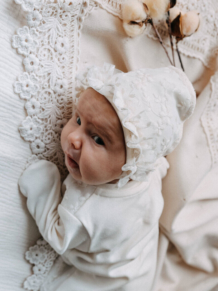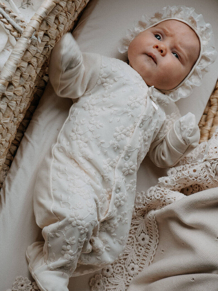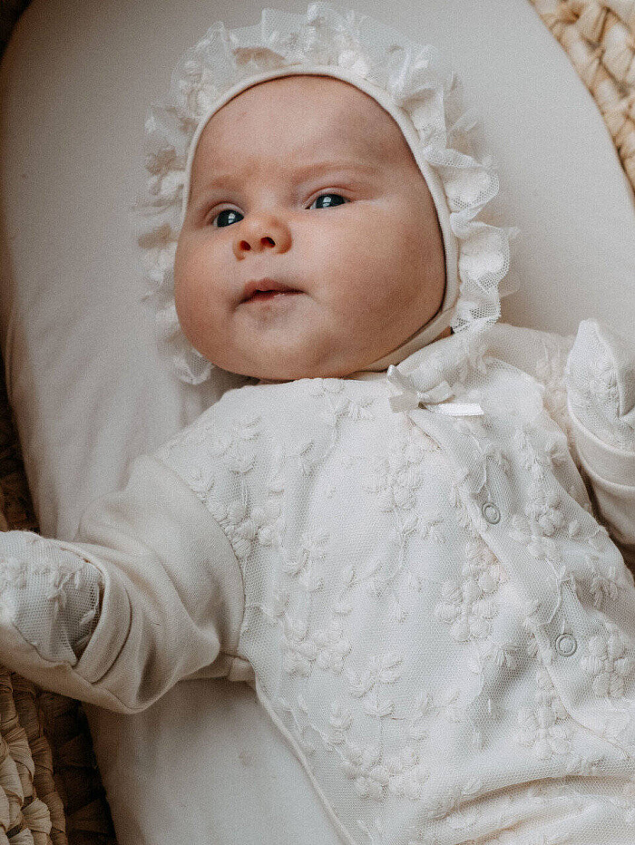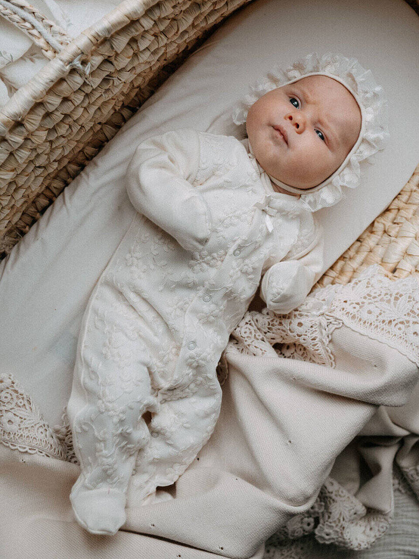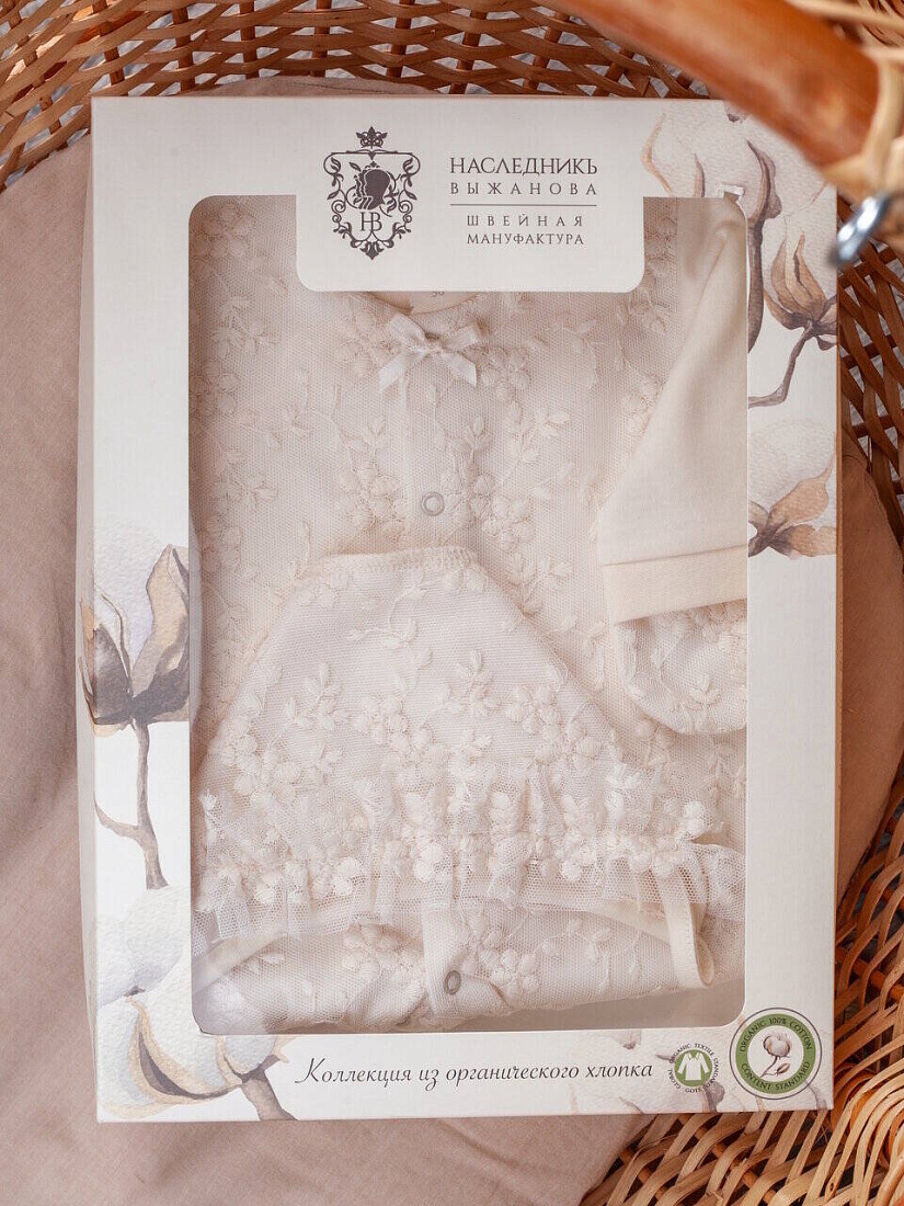 Может ли красивое быть безопасным?! Мы говорим ДА! И коллекция из органического хлопка от Швейной Мануфактуры НаследникЪ Выжанова это доказывает! Изысканный и невероятно красивый комплект на выписку из органического хлопка. В комплект входит комбинезон и чепчик, украшенные нежным натуральным кружевом. Конструкция комбинезона продумана так, что малышу в нем будет максимально комфортно.